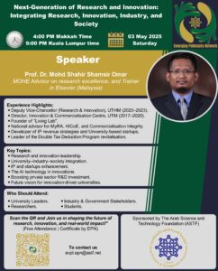 Professor Omar highlighted successful international case studies demonstrating how policy alignment, institutional leadership, and industry engagement can significantly enhance research commercialization and national competitiveness.